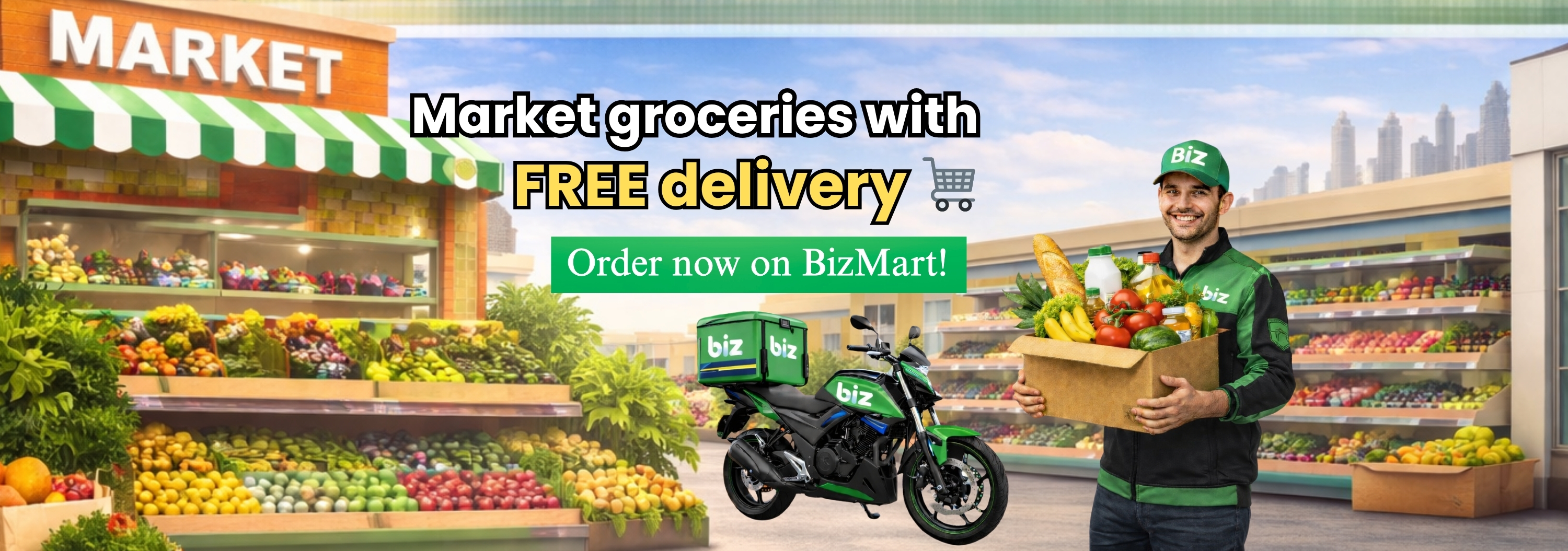 Fast and easy grocery & market delivery. Order fresh products and daily essentials — delivered to you for free.
